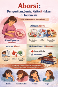 Aborsi adalah tindakan mengakhiri kehamilan sebelum janin dapat hidup di luar rahim. Pelajari jenis, risiko kesehatan, dampak psikologis, dan aturan hukum aborsi di Indonesia secara edukatif dan informatif.